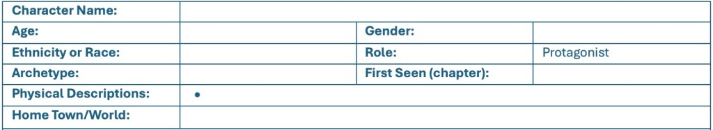 Relationships and romance could be an important part of the character’s growth arc. Detailing these out early in your planning could drive dialog, actions, and emotional outcomes throughout the story.